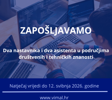 Javni natječaj za zapošljavanje dva nastavnika i dva asistenta Predan zahtjev za pokretanje postupka inicijalne akreditacije visokog učilišta 03.11.2025.